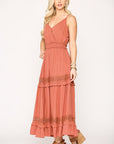 Solid Sleeveless Smocked Waist Maxi Dress with Crochet Trim and Lining